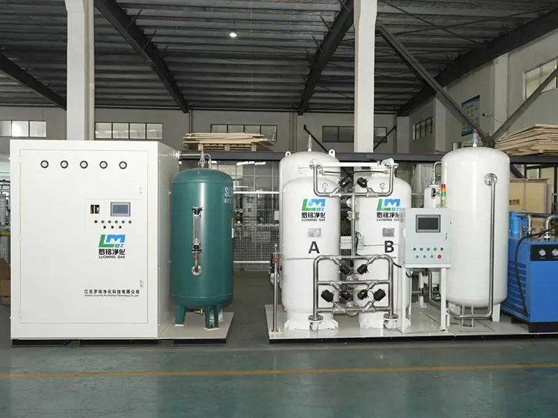 Медицинская кислородная станция Luoming использует атмосферный воздух, соответствующий медицинским требованиям по чистоте, в качестве исходного газа. Комплексный процесс, включающий предварительную подготовку воздуха, двухступенчатое PSA-разделение, доочистку кислорода и интеллектуальную систему безопасности, обеспечивает стабильное производство кислорода чистотой до 99,5%.